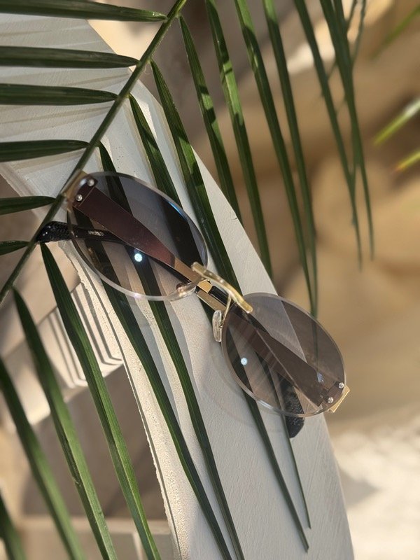Armazon metálico resistente dorado y cristales montados al aire degrade celeste grisáceo filtro uv400