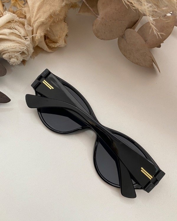Policarbonato negro brilloso y cristales negros con detalle dorado en patilla